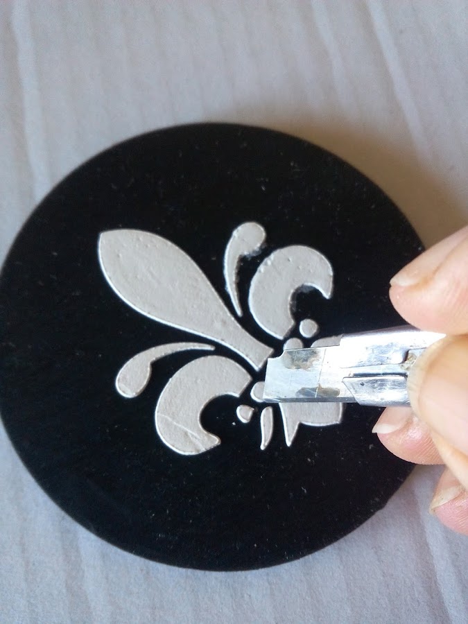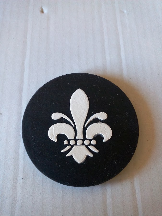 Lo pinte de negro y realicé un stencil en relieve con la imagen de la flor de lis.