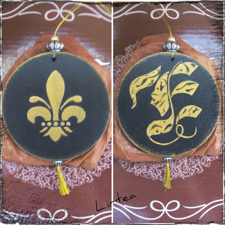 Aquí os muestro mi trabajo para su reto, un medallón de madera con la flor de lis en una cara y por la otra su inicial.