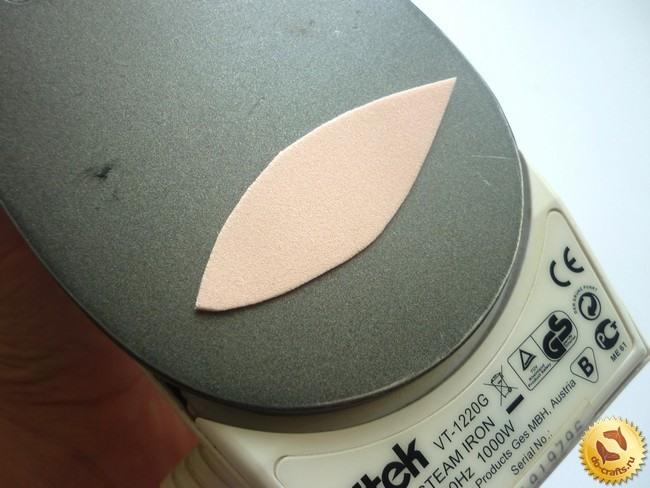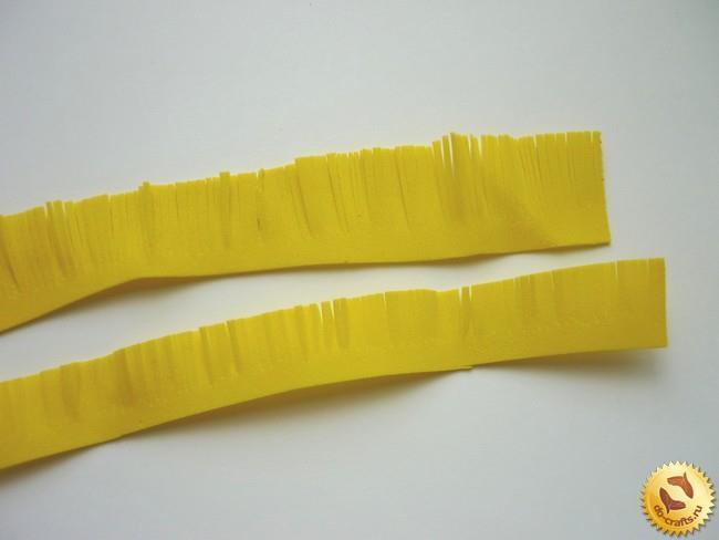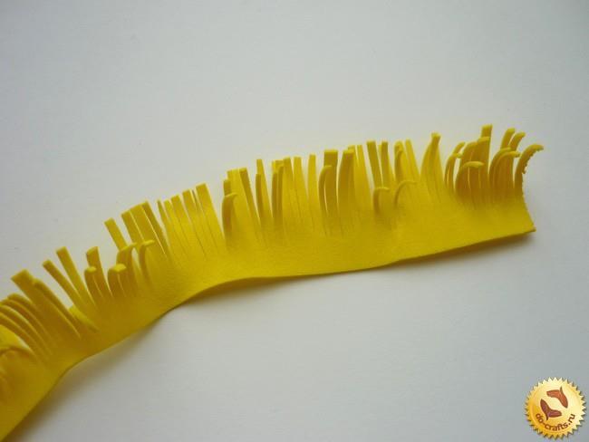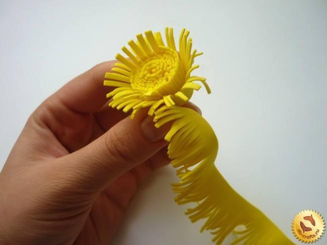 Elaboramos el centro de loto de dos tiras de foami. La parte cortada calentamos con la plancha.