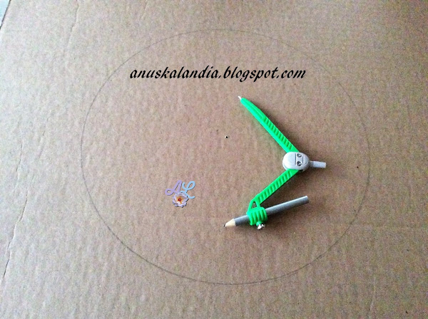 1.- Cogemos 3 trozos de cartón. En cada uno vamos a hacer 2 círculos, uno dentro del otro. El exterior, tendrá 30 cm. de circunferencia y el interior 5 cm. menos, o sea, 25 cm.