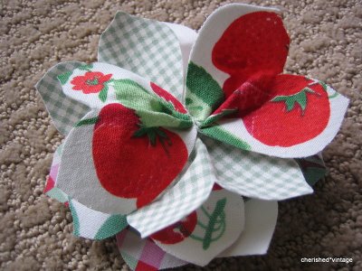Cortar em 5 diferentes tecidos com molde colocado sobre a estampa fazer o acabamento em 4 pétalas para cada peça. A 5ª será usada na parte de trás da flor para a estabilidade.