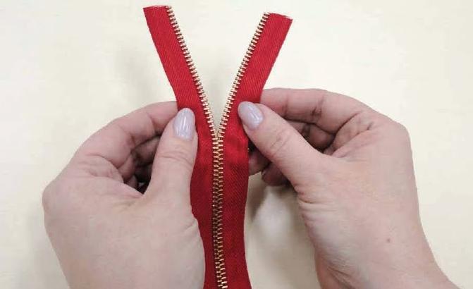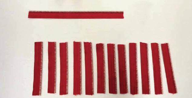 - Agora vamos fazer as pétalas, alinhave as tiras de ziper e puxe levemente.