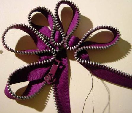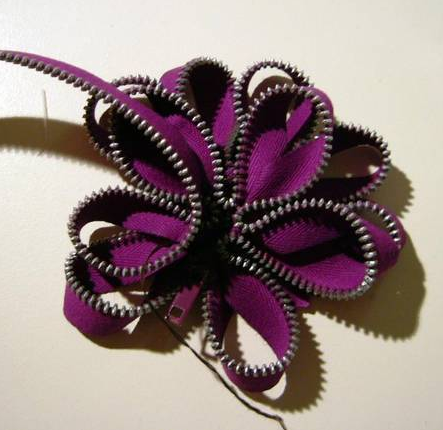 Con el sobrante de la cremallera arrollar y hacer el centro.