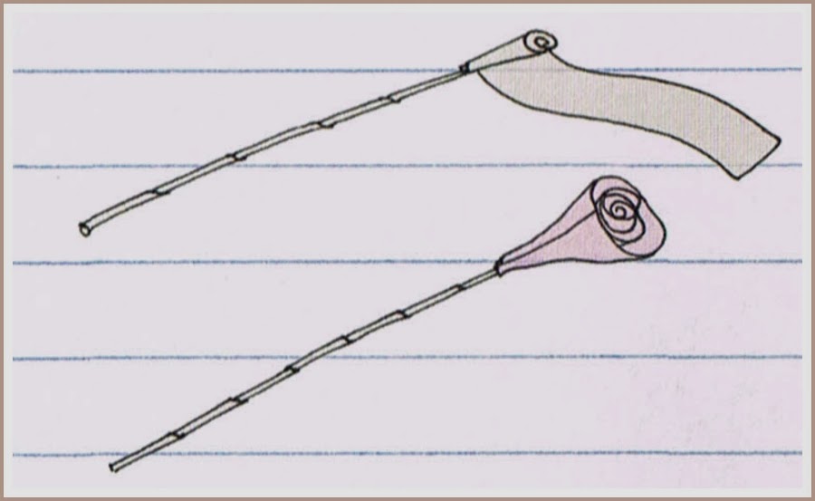 Lo primero que hay que hacer es cortar un trozo de alambre de unos 20 cm. Después lo cubriremos envolviéndolo con tiras de cartulina de 1 cm de ancho. Las iremos pegando con el pegamento. Una vez finalizado ésto ya tendremos el tallo.