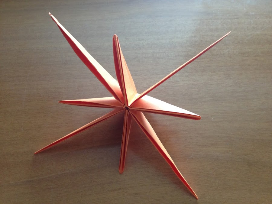 Estrella de 8 picos Hola, hoy se me ocurrió algo muy lindo un estrella modular de 8 picos usando la técnica de origami modular, la cual podemos colocar de adorno en una ventana de vidrio de de nuestras casa en donde le refleje el sol para poder apreciar los hermosos pliegues que nos proporciona este arte de doblar papel, otra idea en donde se puede utilizar y es donde lo coloque es el vidrio del ...