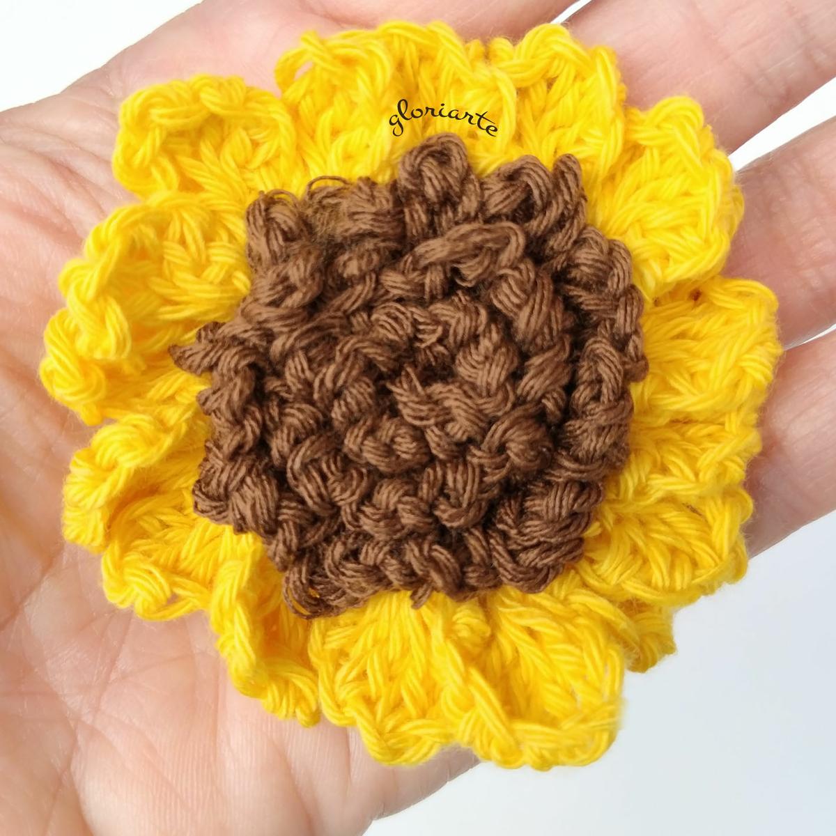 Sólo necesitas un poquito de hilo en color marrón y amarillo y tu aguja de ganchillo, ¿me acompañas y la tejemos juntas?, ponte cómoda y dale al play para ver cómo se hace este bonito girasol:
