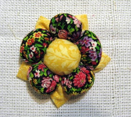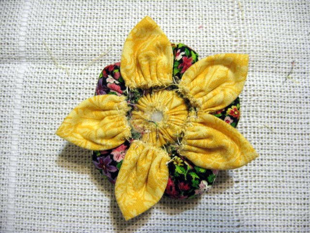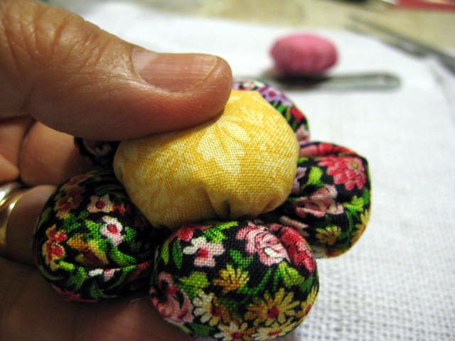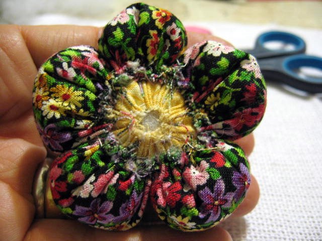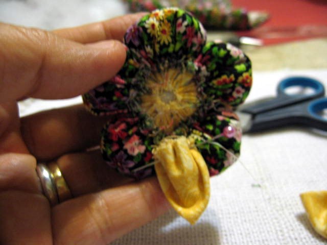 Faça o miolo da flor como foi ensinado no fuxico em ziguezague.