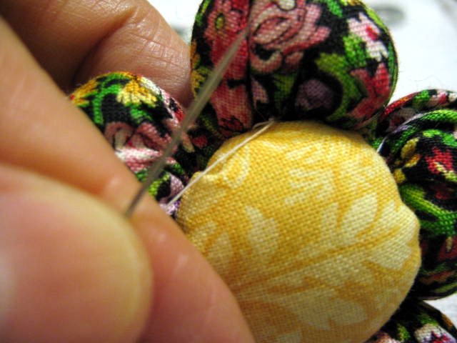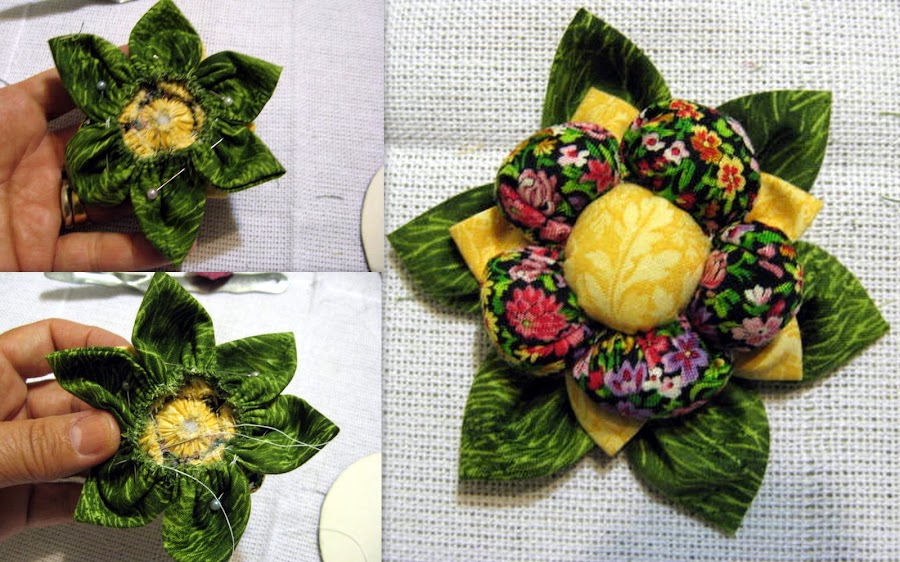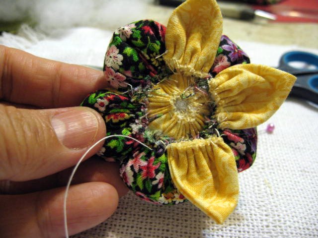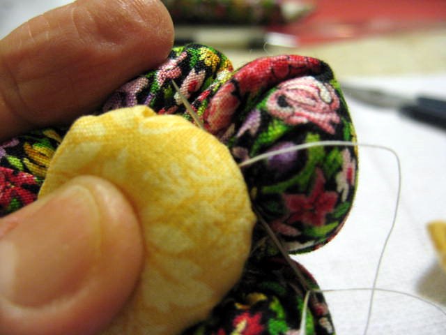 Encaixe o miolo da flor e costure a volta.