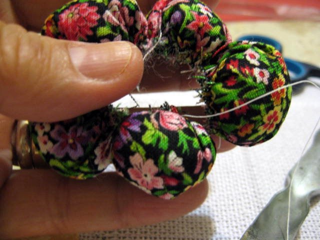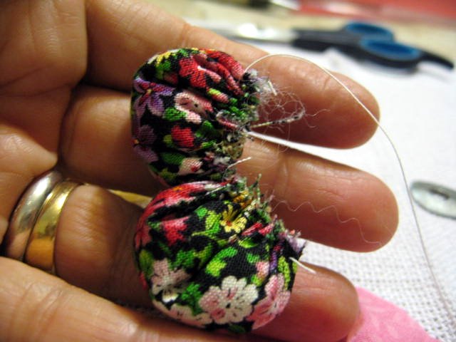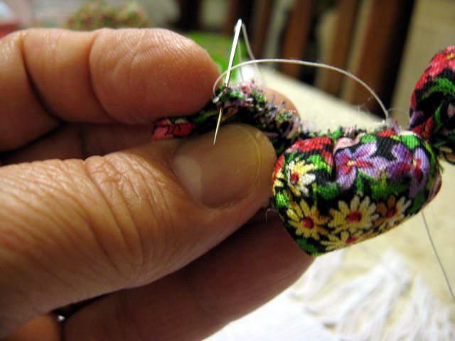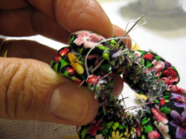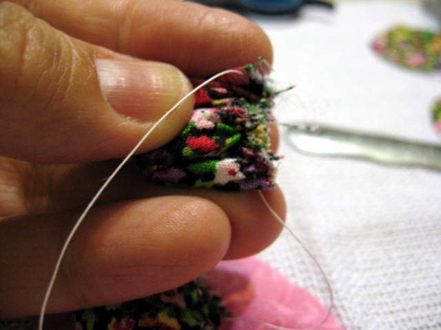 Puxar a linha para franzir e dar um nó.