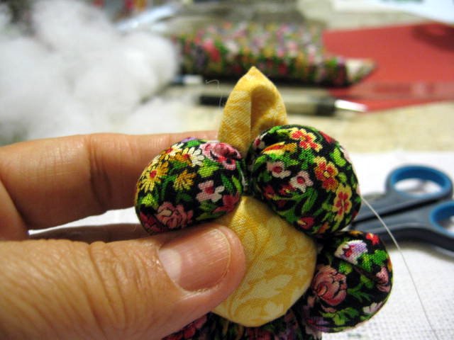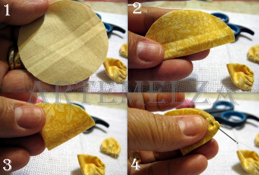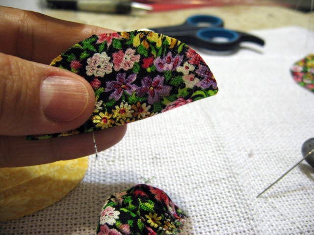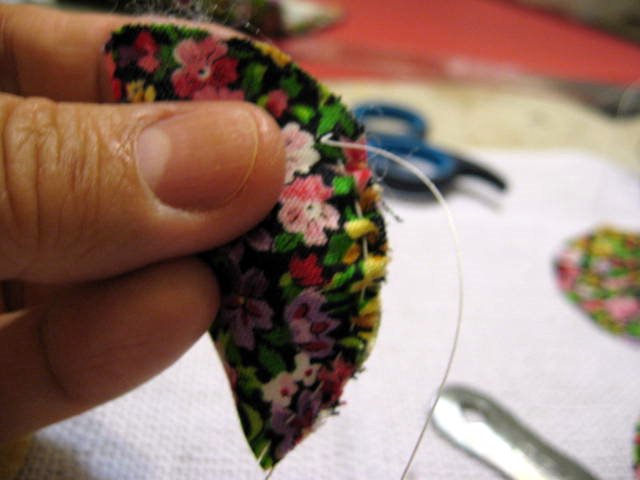 Costure do lado direito da flor que é mais fácil.