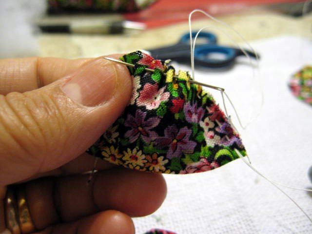 Continuar a costura até fechar o semicírculo.