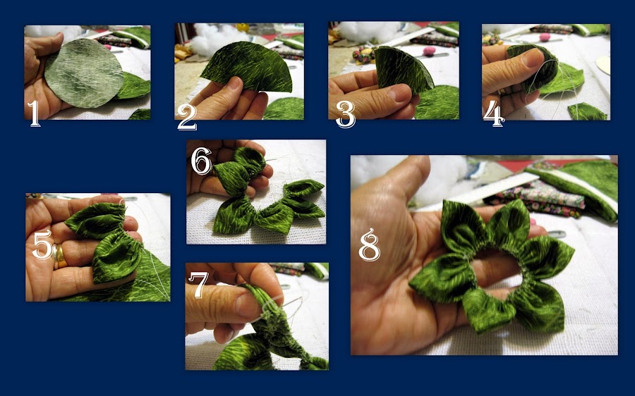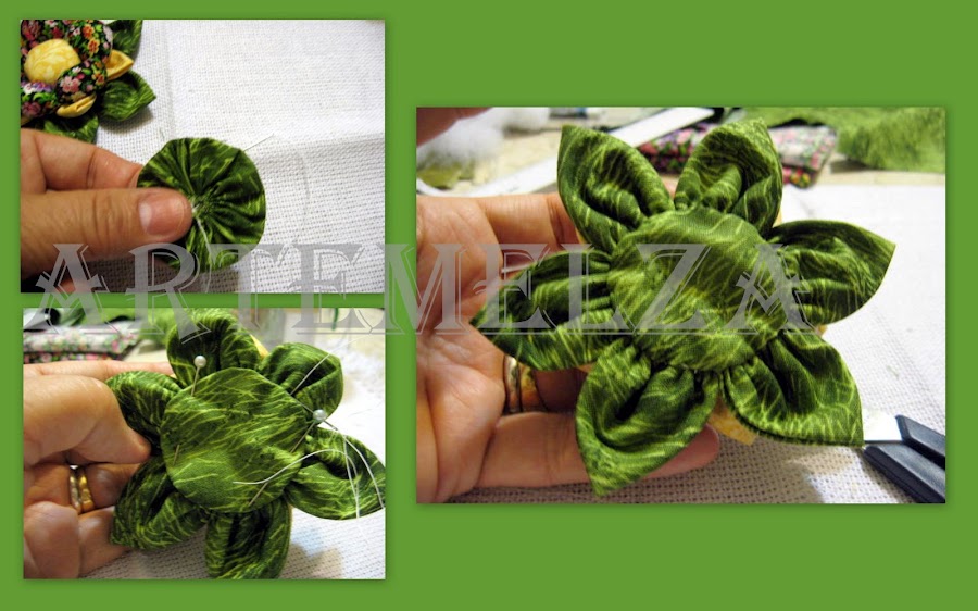 faça as folhas como já foi ensinado no flor de fuxico. Una as 6 folhas.