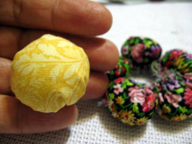 b) corte 7 círculos de 6cm de diâmetro de um tecido liso.