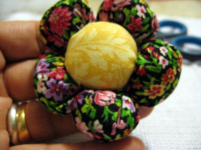 Para finalizar costure as pétalas da flor formando um círculo.