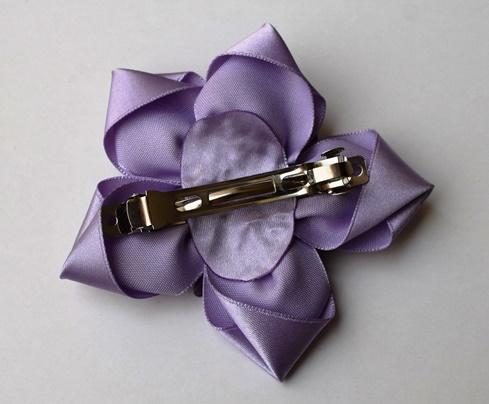 En el medio podemos poner un botón forrado con la cinta del mismo color. Un prendedor de cabello convierte nuestro flor en un lindo accesorio.
