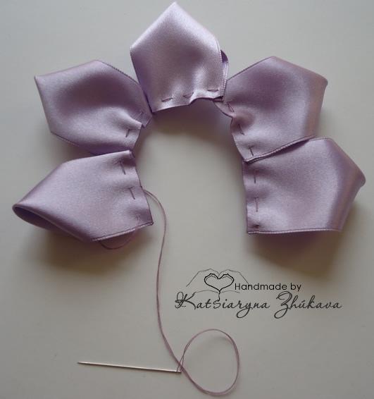 Cosemos todos los pétalos con el mismo hilo con la puntada suelta, uno por uno.