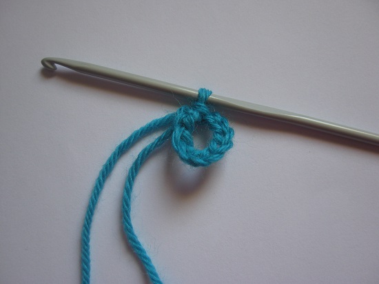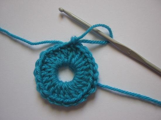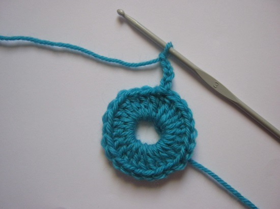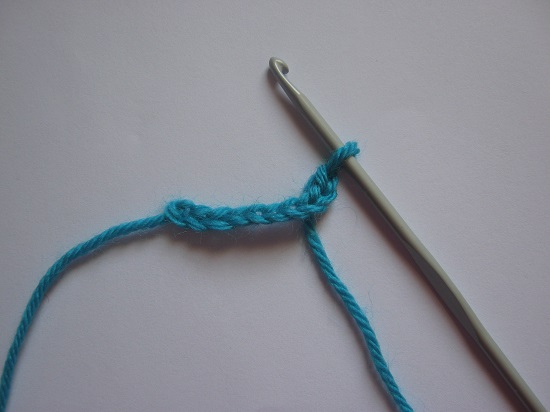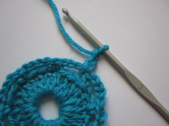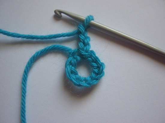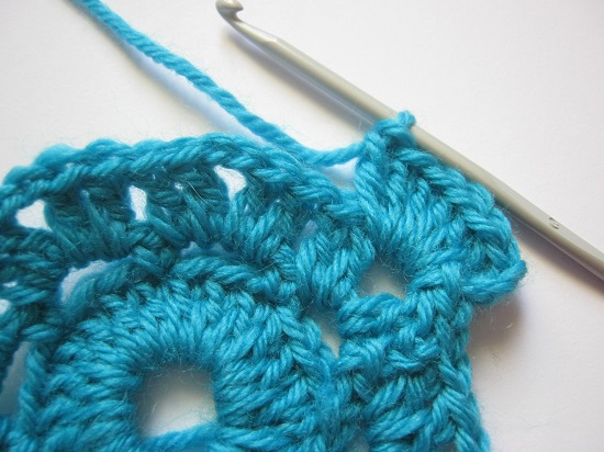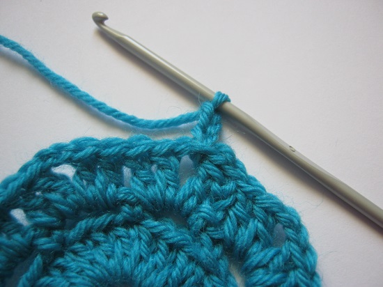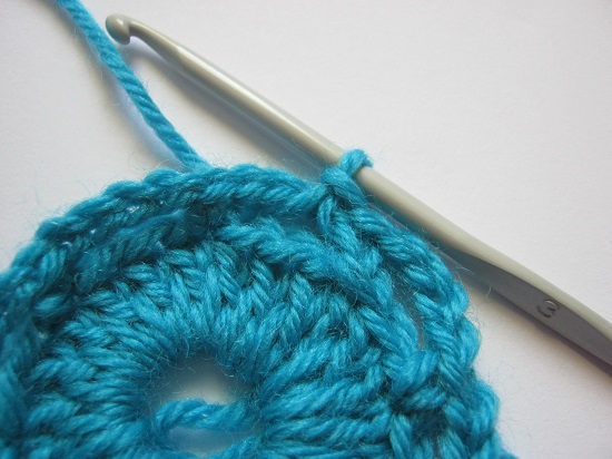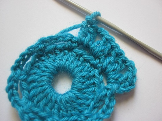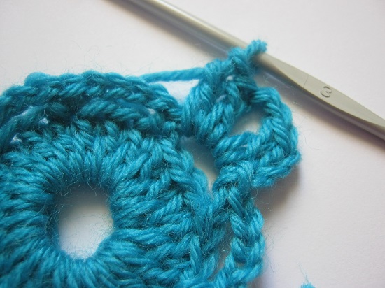 tejer 4 cadenetas, volver a saltar dos puntos altos de la base y 1 punto bajo en el siguiente, repetir 6 veces.