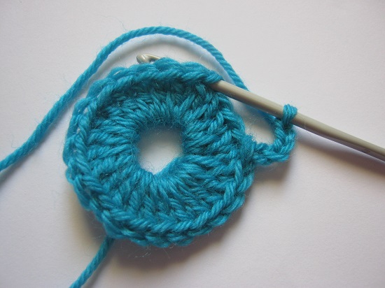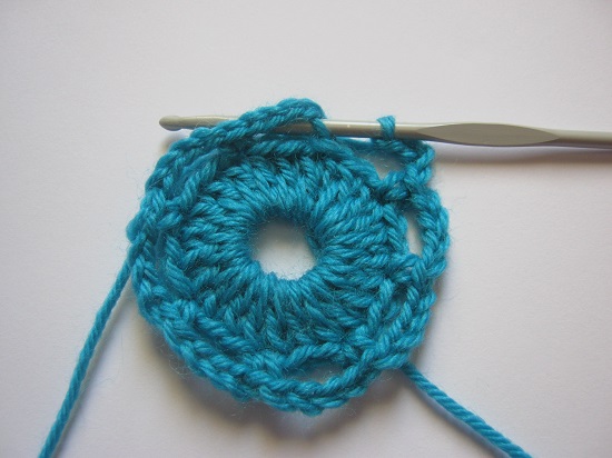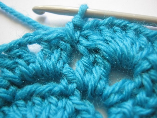 a continuación tejer 23 puntos altos, en total habrá 24 punto altos (el primero formado por las 3 cadenetas tejidas al principio)
