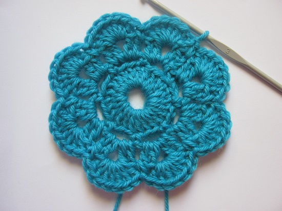 En la próxima entrada os explicaré cómo tejí el borde blanco de los cuadrados de la manta. Mientras podéis ir practicando con la flor...