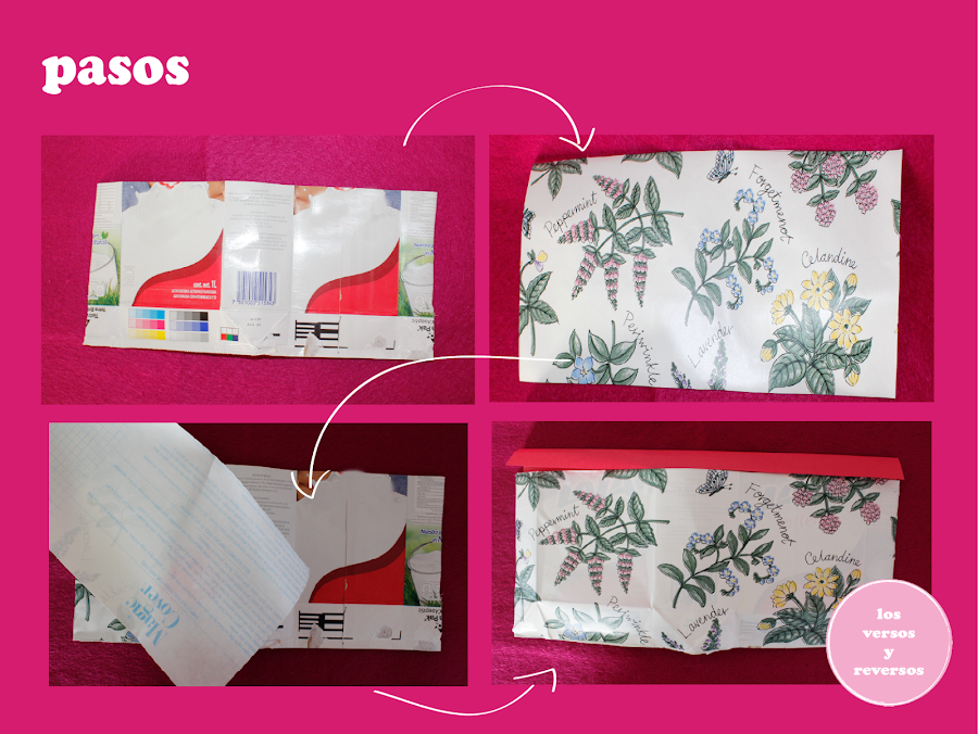 Junté las orillas con cinta durex y doblé los extremos (eso resulta fácil, ya que el envase estaba doblado anteriormente) y los pegué con la pistola de silicón.