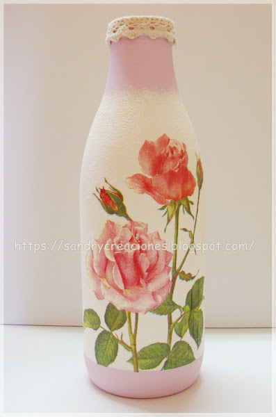 Cuando pasa por nuestras manos alguna botella, bote o recipiente del material que sea y que nos gusta su forma o apariencia nos lo solemos guardar por si se nos ocurre más adelante algún proyecto para hacer con ellos. La botella que utilizamos hoy es una de las que teníamos hace bastante tiempo por casa, nos gustó su forma y la guardamos por si en algún momento nos llegaba la inspiración y queríamos darle un nuevo uso y ese momento llegó con un reto con un grupo de amigas muy queridas (Pulpitas creativas) el tema del cuál era decoupage ya que precisamente cuándo la guardamos lo hicimos pensando en algún día decorarla con la técnica de decoupage. Así que sin más nos pusimos a ello y aquí os traemos el resultado con su tutorial deseando que os guste