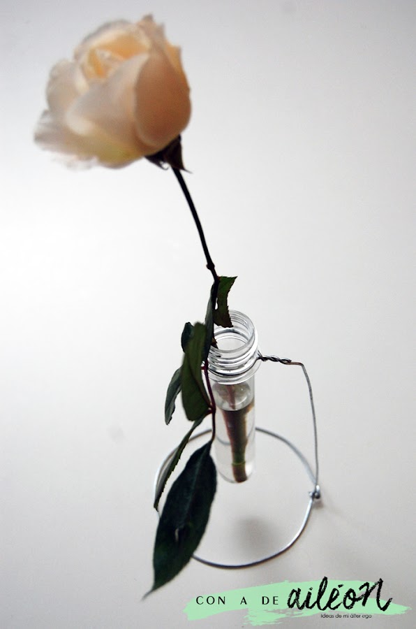 Para no complicarnos mucho la vida y en vistas a San Valentín, os enseño cómo hacer este florerito minimalista solamente con una probeta con rosca (en mi caso es de chuches) y un poco de alambre del de toda la vida.