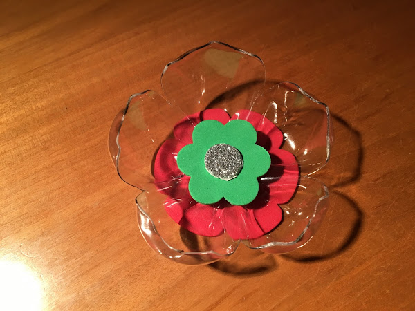 Hoy os propongo hacer un broche utilizando el plástico de las botellas de refresco. ¿Os acordáis de como se hacían las flores de plástico? Pues para este broche utilizamos la misma técnica, aunque haciendo unas flores más pequeñas para que queden de un tamaño adecuado para un broche. Así es como se hacen: Con ayuda de un cúter troceamos una botella de plástico. Recortamos en papel un molde con for ...