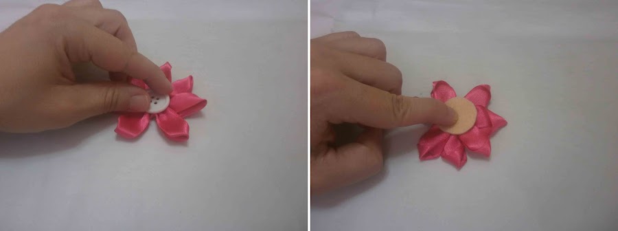 Se pega un botón o adorno en el centro, y en la parte de atrás un trozo de fieltro.