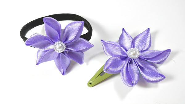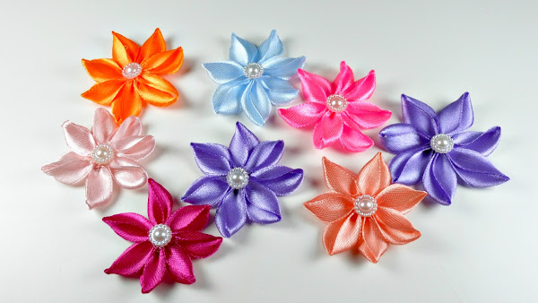 Hoy os muestro otro tipo de flores, conocidas también como Kanzashi. Son flores con cintas de raso realizadas con pequeños trozos de cintas, enrolladas de tal forma que pegadas todas juntas, forman estas formas tan bonitas que ves en la foto. Además las puedes hacer de cualquier grosor de cinta y combinar colores para hacer bonitas decoraciones.
