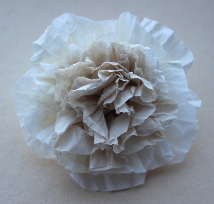Estas flores fueron las primeras, con el papel tal cual, con el tono del café, ensayé con diferentes modelos para ver cuál me gustaba más, alguna con más pétalos, otra con menos...
