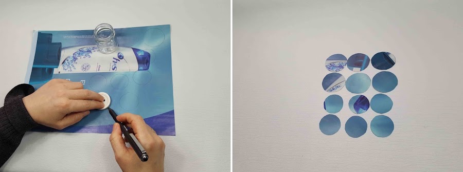 Recortamos todos los círculos, los grandes y los pequeños.