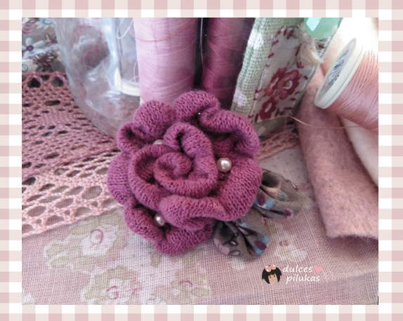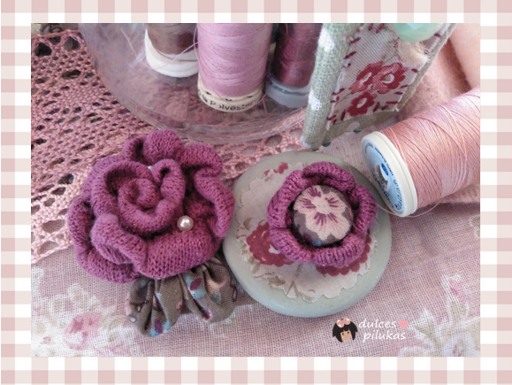 Con tan sólo unos trocitos del jersey he realizado unos broches,