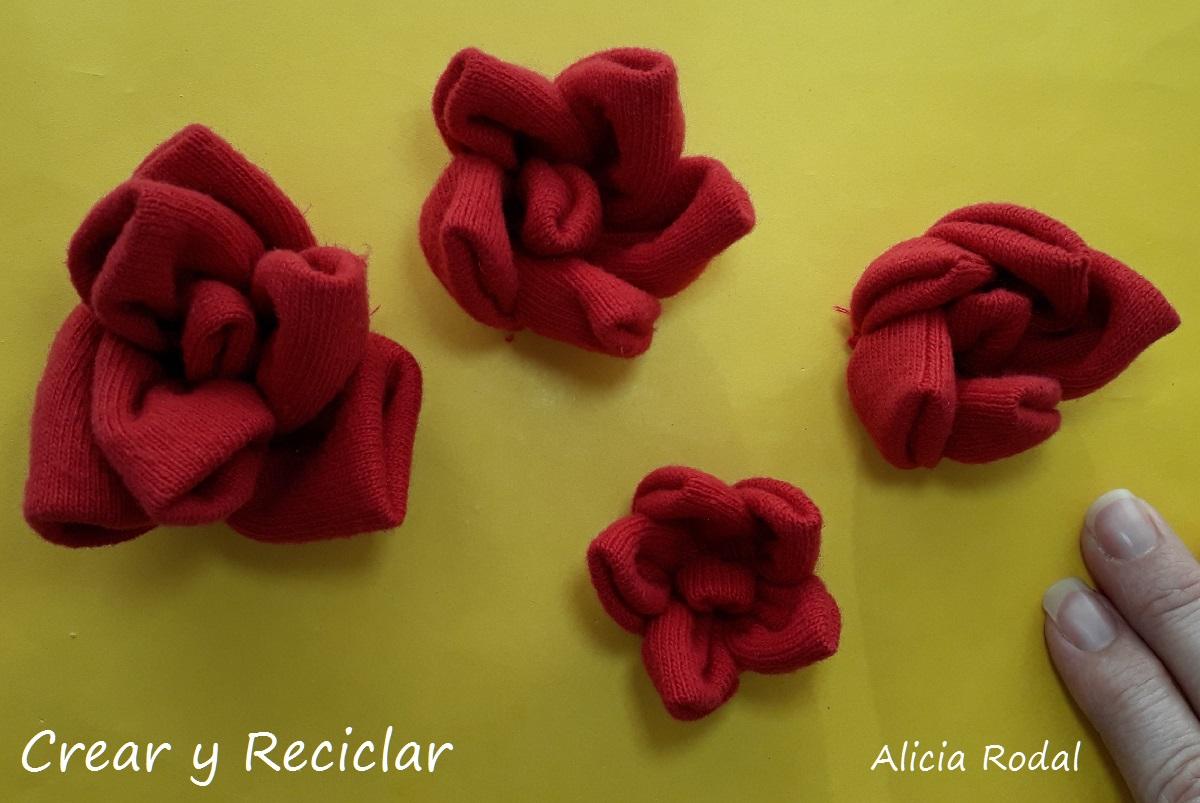 Cualquiera de estas técnicas, las puedes hacer con más o menos pétalos, depende del tamaño de los círculos y del tipo de tejido. Yo para mi ramo de rosas haré estas flores de 4 tamaños diferentes: