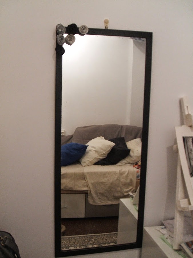 ...y colocado de adorno en un espejo de Ikea al que también he pintado a juego con la decoración de la habitación donde está.