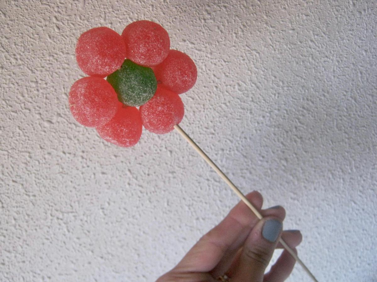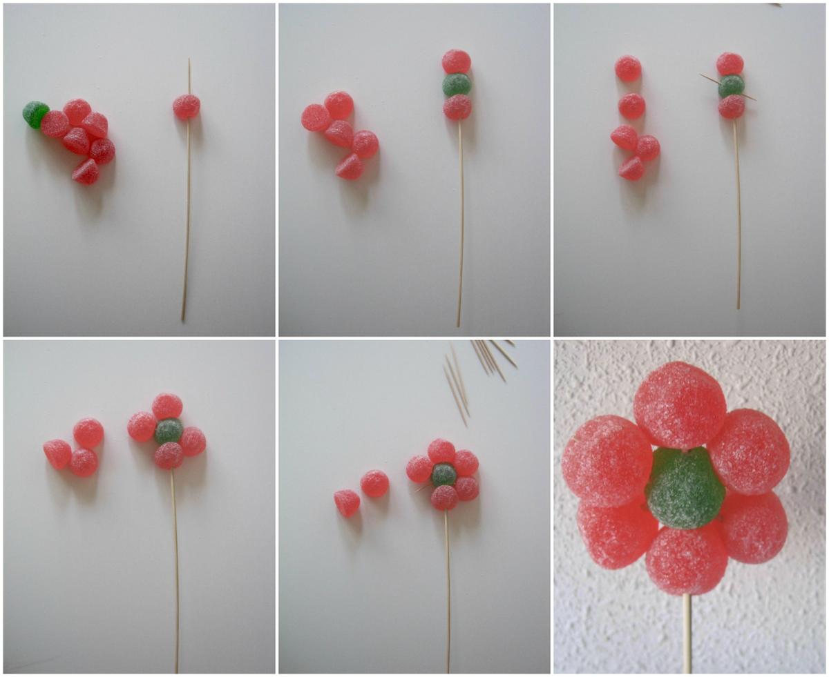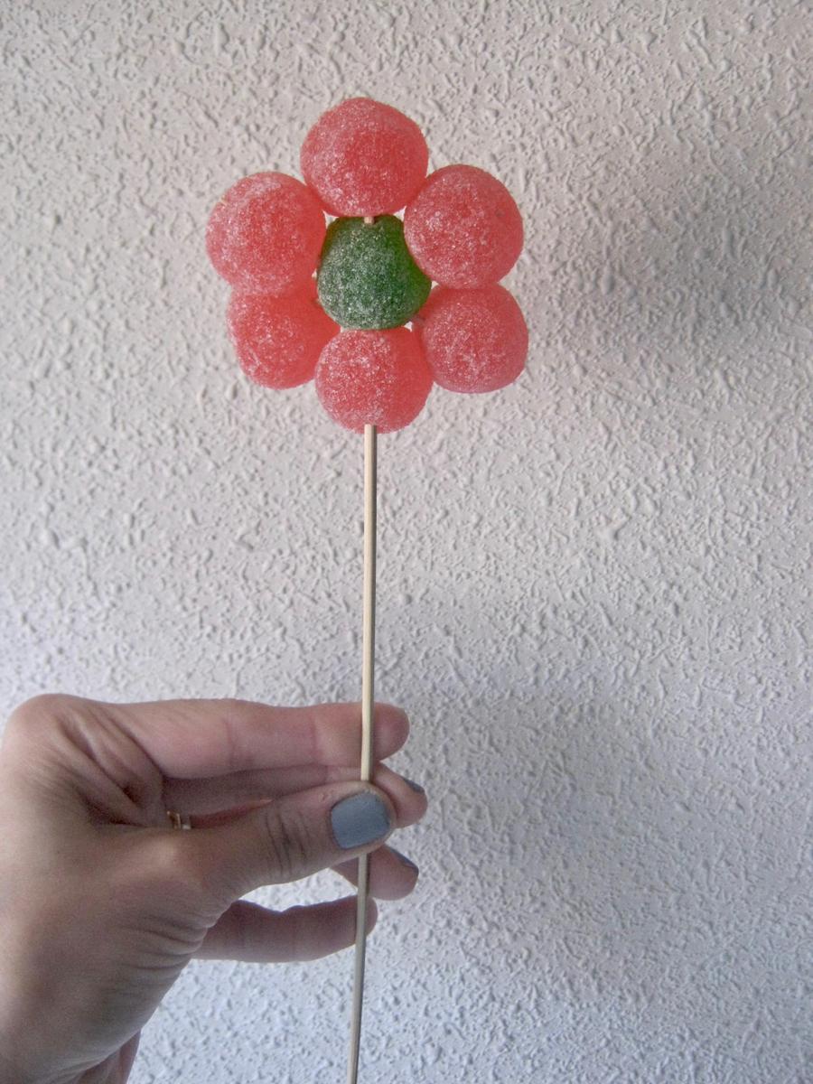 Pues estas flores de gominolas os vendrán de maravilla. Son una idea muy sencilla y barata.