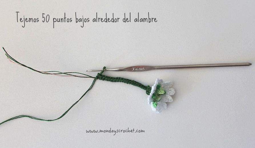 Tejemos 50 p.b. alrededor del alambre y del hilo inicial del receptáculo.