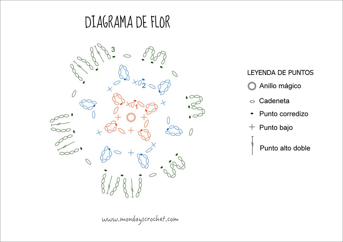 Para tejer los pétalos seguimos el diagrama: