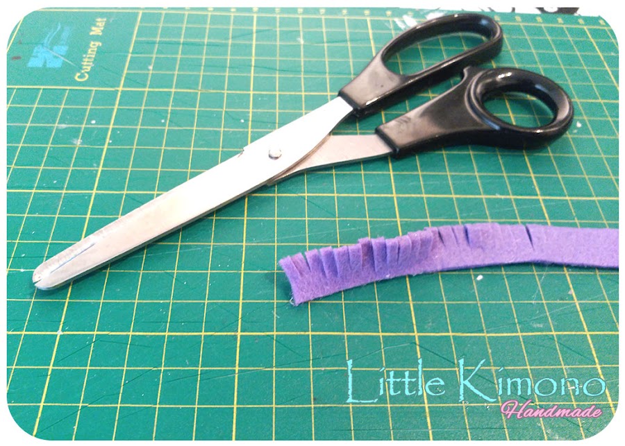 3. Por la parte que hemos doblado hacemos cortes de unos 2mm. a lo largo de toda la tira, a modo de flecos ^^