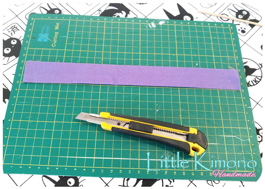 1. Empezaremos por cortar tiras de 3cm de ancho, yo usé varios tonos de morado porque me gustaba más, eso es opcional ;)