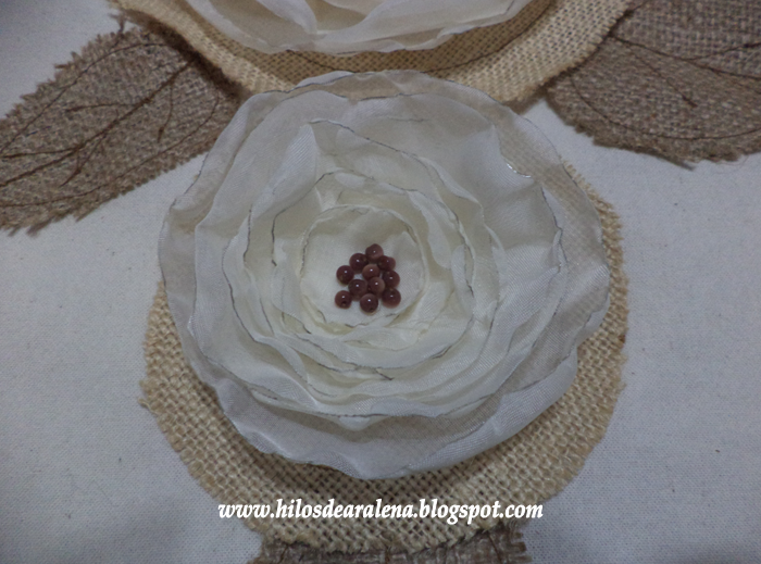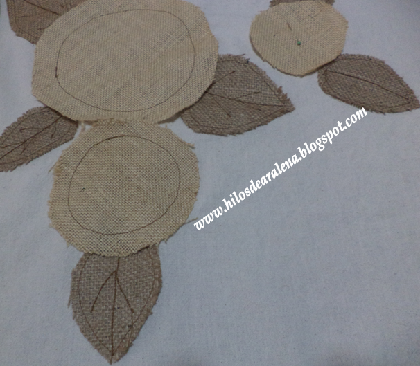 Después coloqué los círculos base de las flores, que en esta caso son de arpillera un poco mas claro.