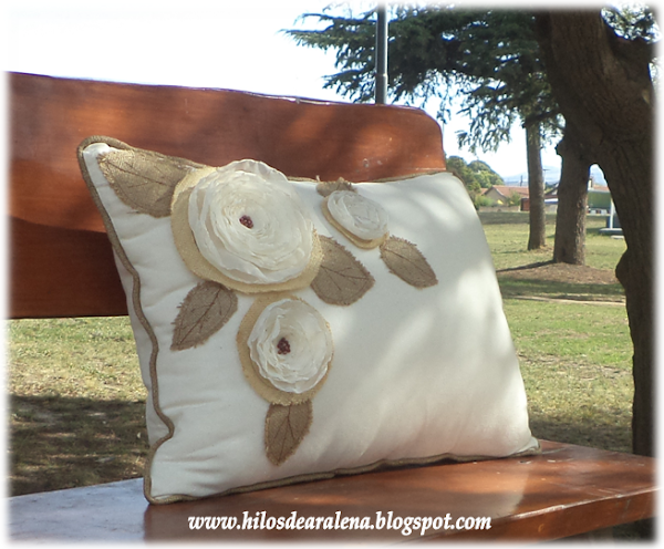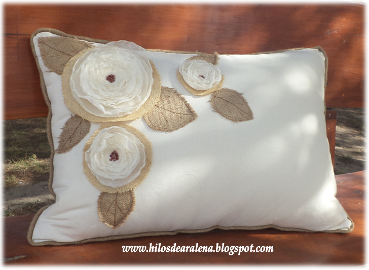 Hoy les traigo un almohadón realizado con lienzo crudo , arpillera y gasa o voile.