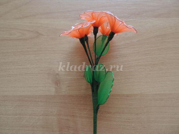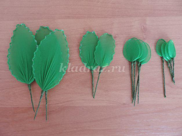 Juntamos las flores con las hojas en el tallo.