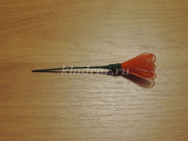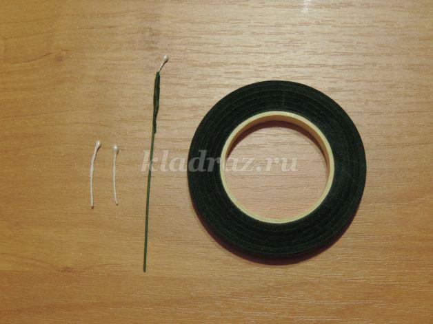Los pétalos normalmente se fijan en el tallo con un hilo. Luego se tapa la parte de la unión con masking tape verde.