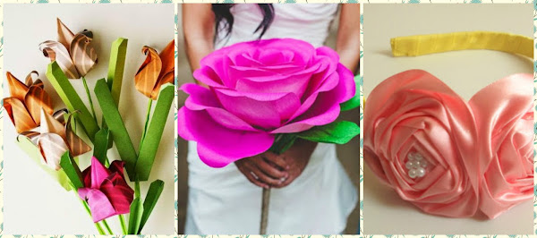 ---->>>Tutorial: Ramo de flores de papel y rosas de listón : Haz clic aquí