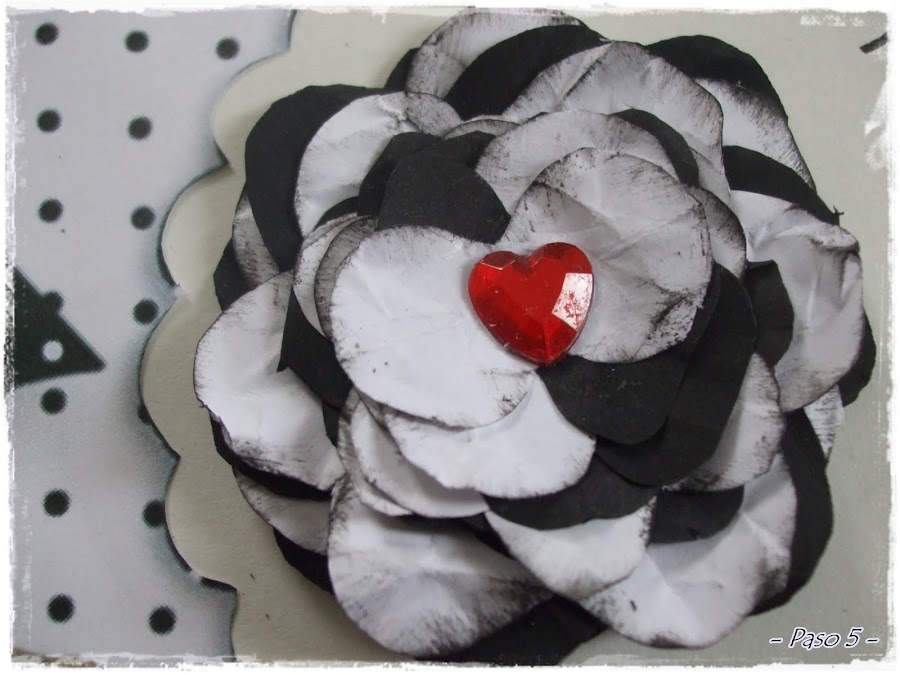Paso 4. Después las flores de menor tamaño. Terminar con los pétalos dobles. Rematar con un brad, una gema... a gusto.