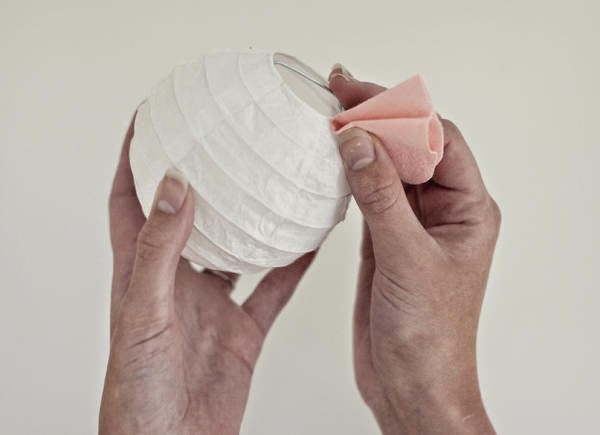 Luego vamos pegando todos los "pétalos" al rededor de la esfera que hemos elegido.