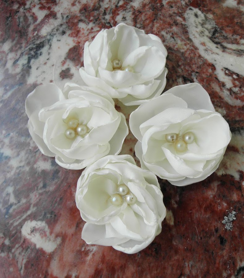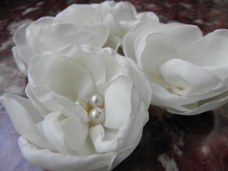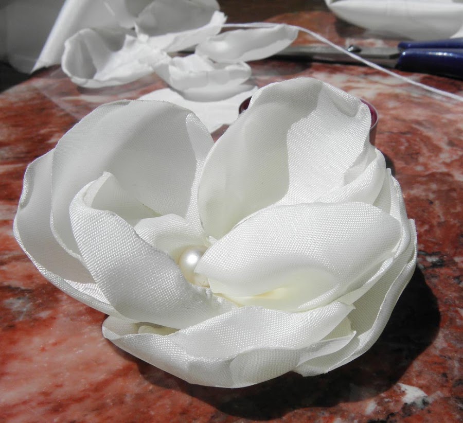 Y luego a ir poniendo en alterno los demás pétalos hasta terminar con los doce, coser unas perlas y colocar en la parte de abajo la horquilla.