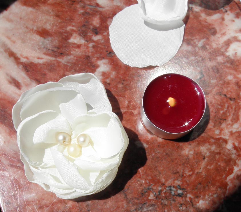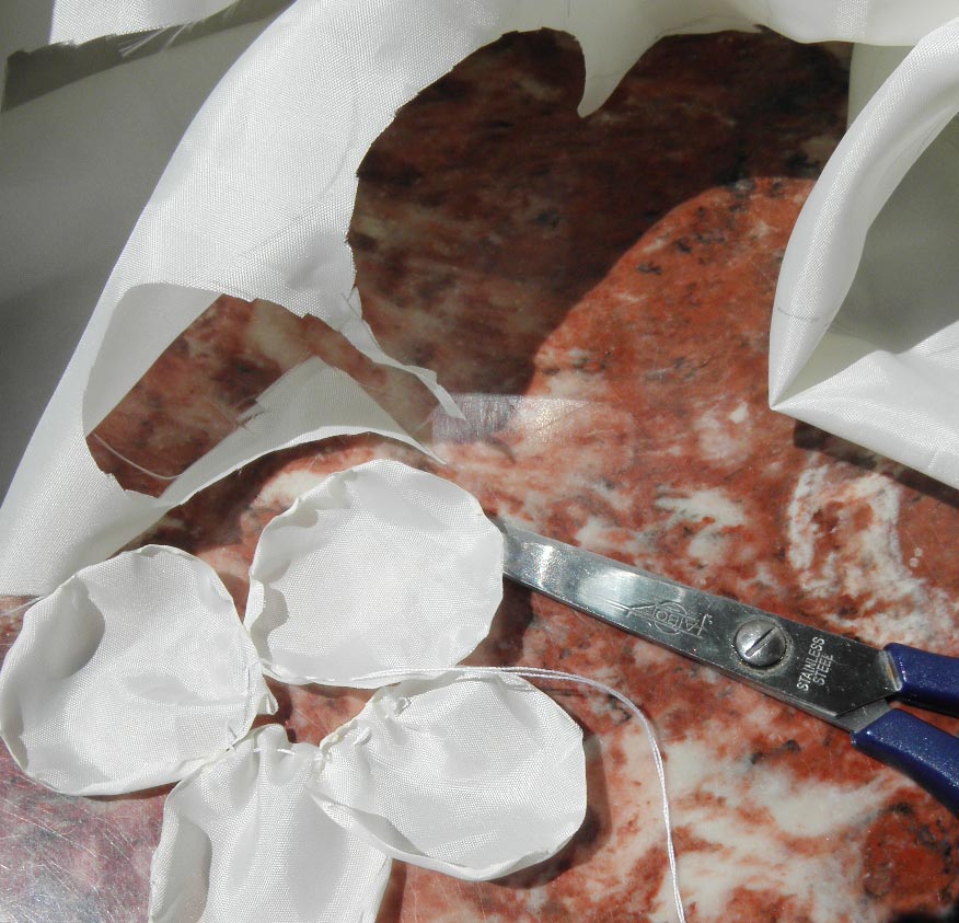Es de lo más sencillo, cada flor tiene doce pétalos (círculos) . En la fotos ves el montaje del comienzo con cuarto pétalos después del sellar los bordes con la llama de una vela , si es aromatizada mejor, no por nada sino por que huele muy bien.