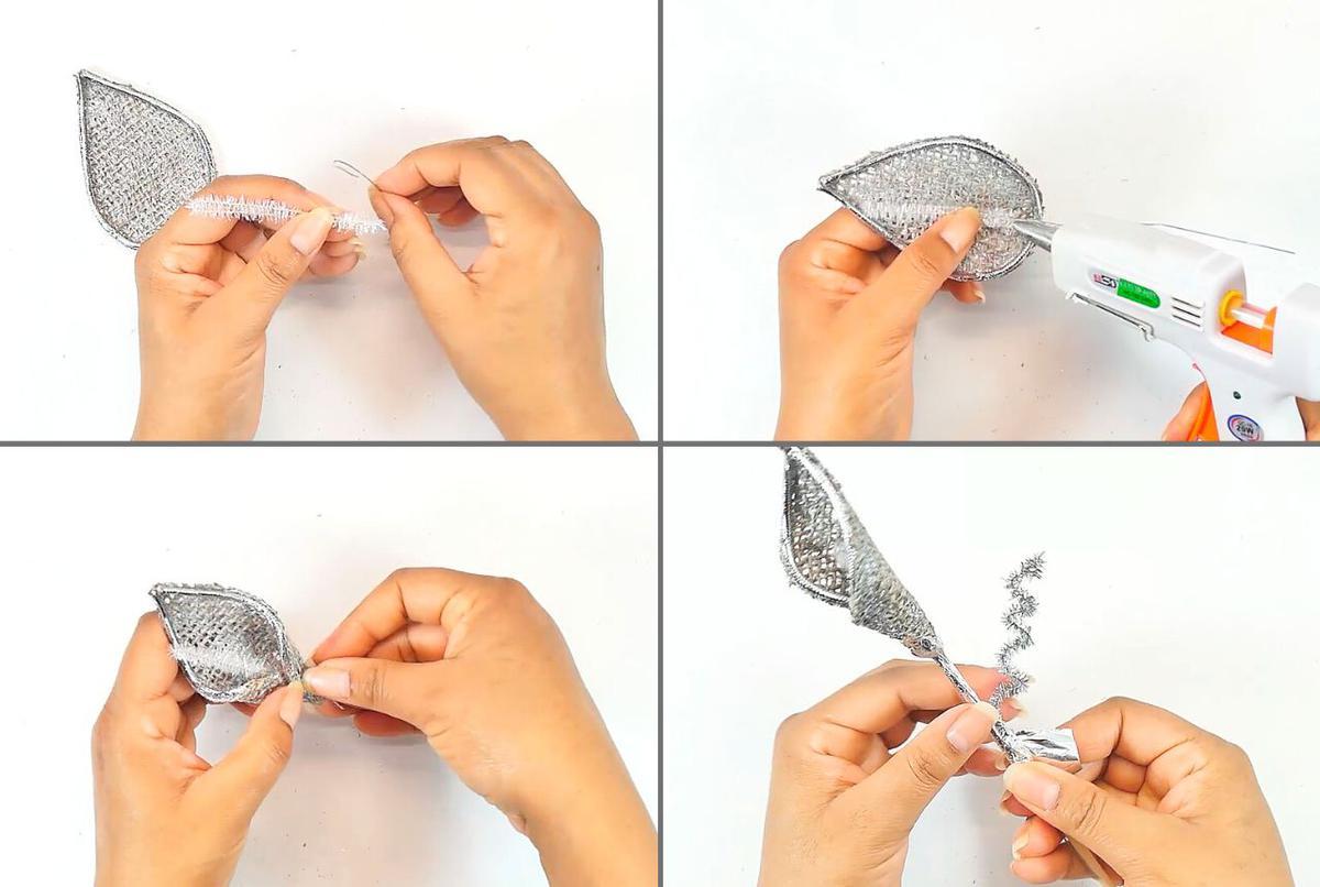 Aunque yo usé el color plateado para estas flores, tu puedes hacerlas de color dorado, también quedan muy bien.