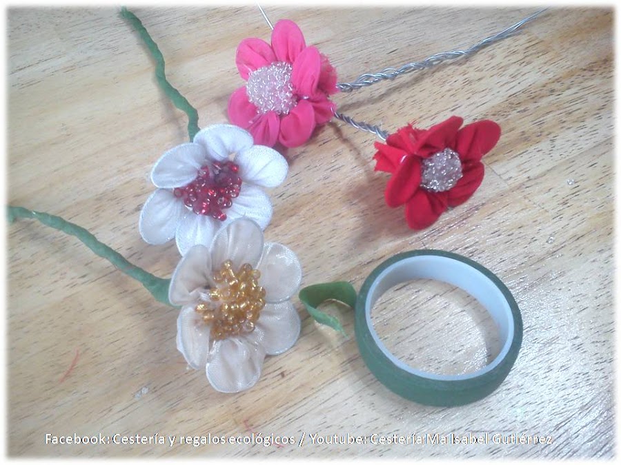 Y por último, forramos el alambre con cinta para tallos y estarían listas nuestras flores!